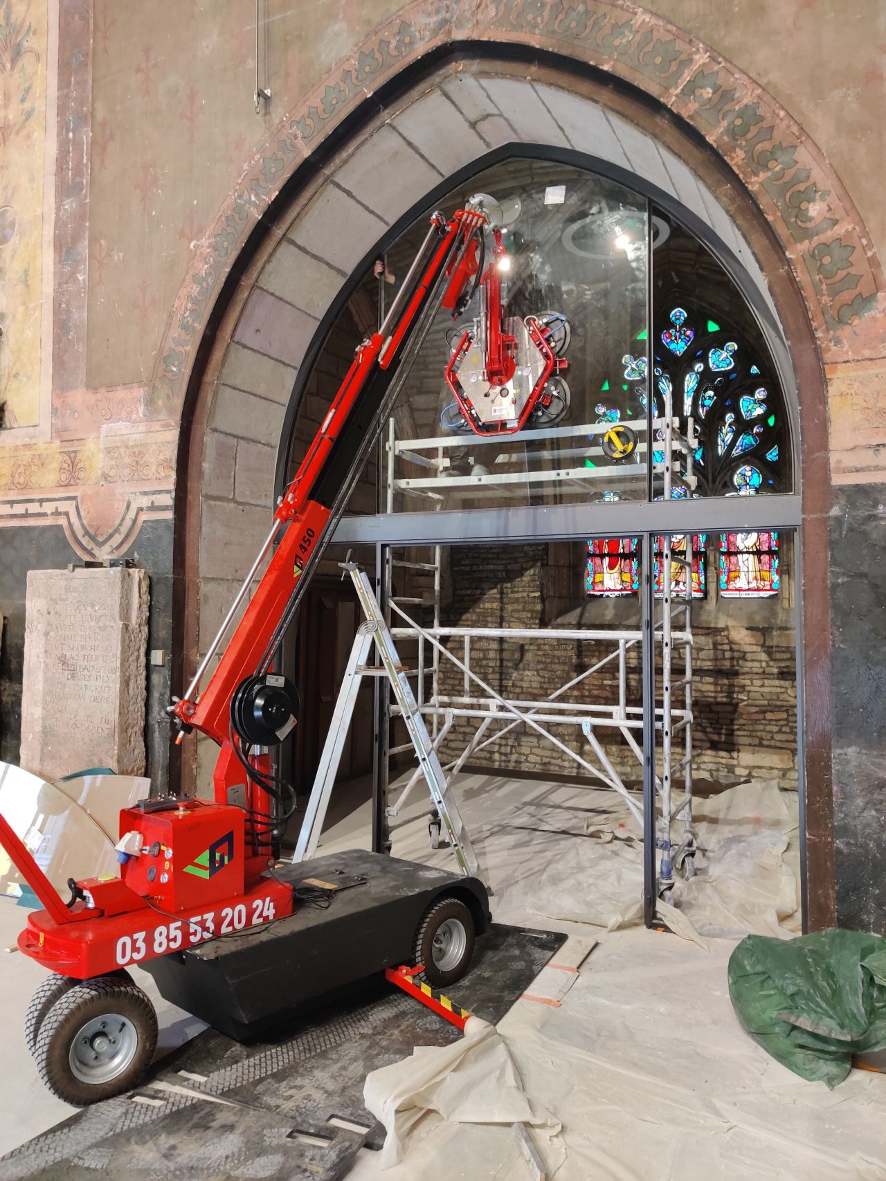 Livraison et assistance à la pose de vitrages sur un très beau chantier porté par une entreprise locale de métallerie et ferronnerie d’art, avec notre camion-grue 68 t/m et Intervention en mini-grue.